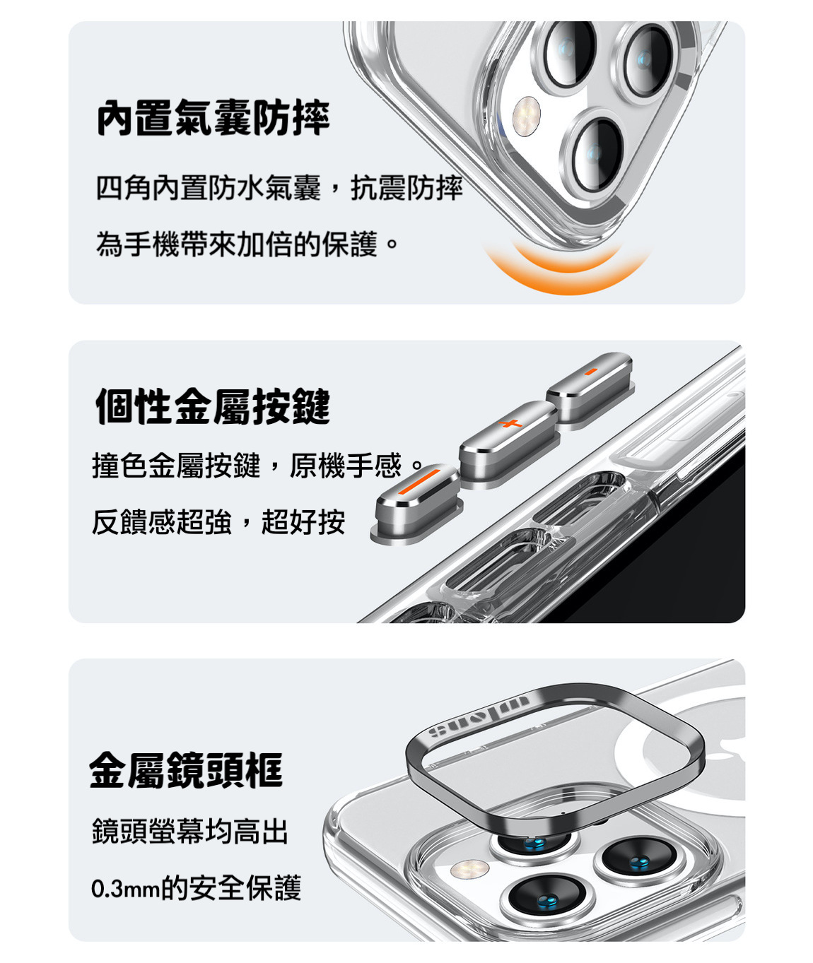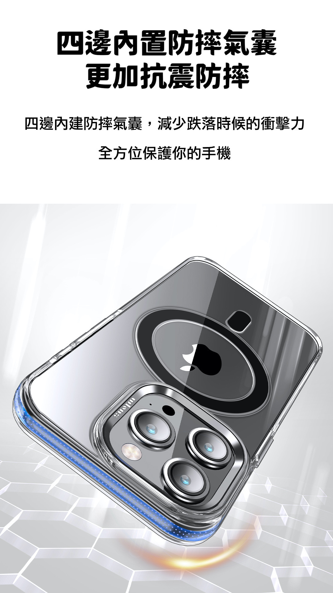 4. 氣囊環繞 - 嵌入氣囊技術,提供額外的衝擊吸收,全方位保護手機。