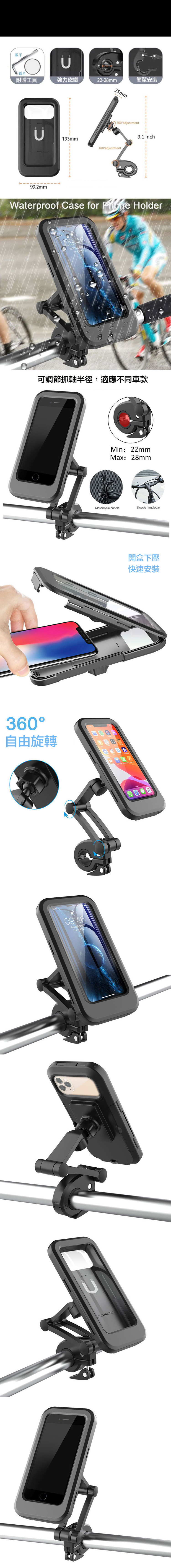【全封閉車用防水手機支架】 360度旋轉 防水車用支架~自行車、摩托車、電動車通用。6.7寸以下手機皆可使用