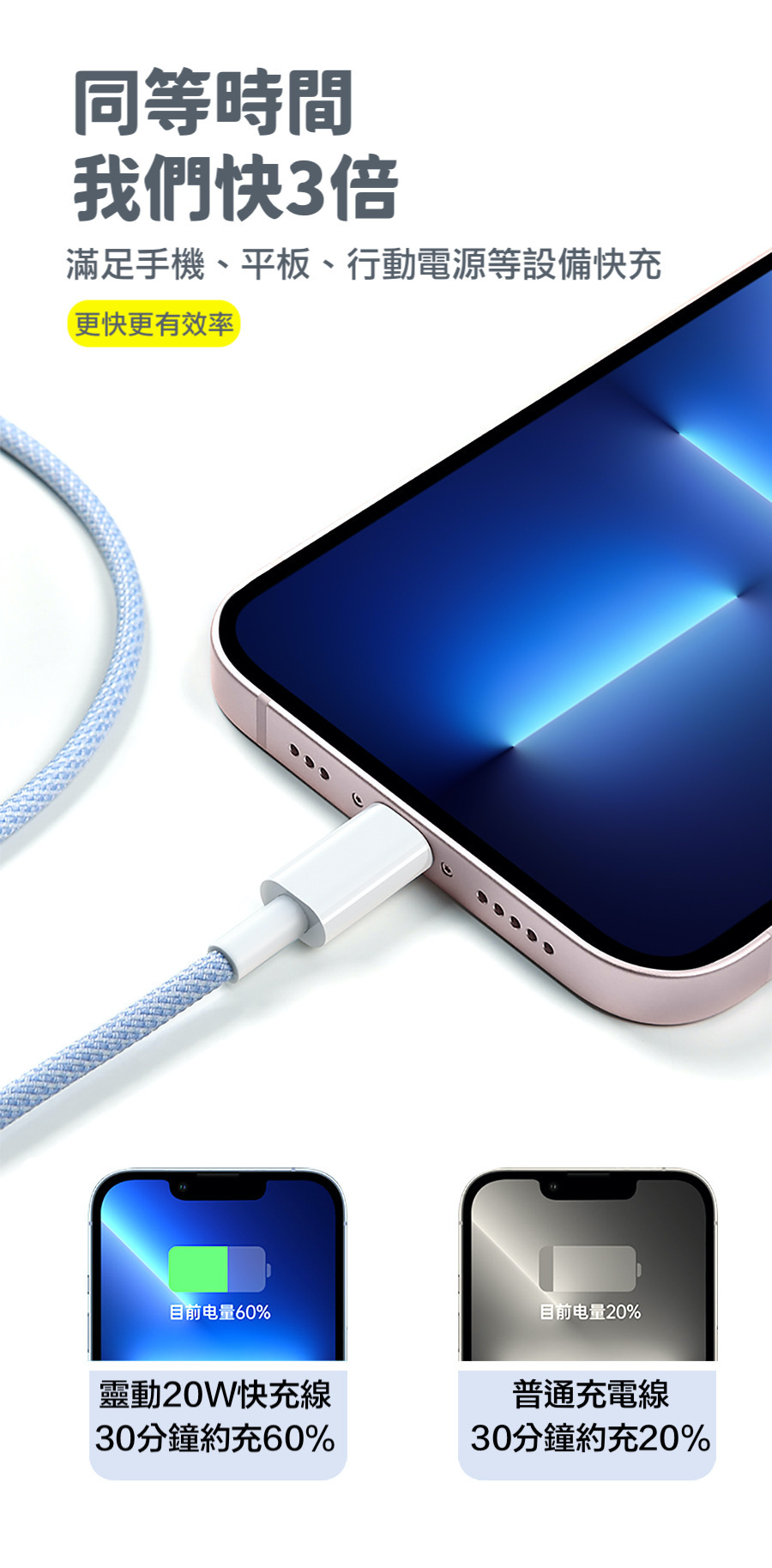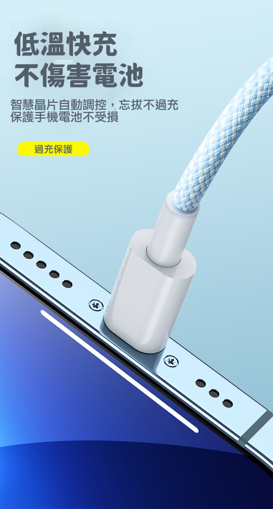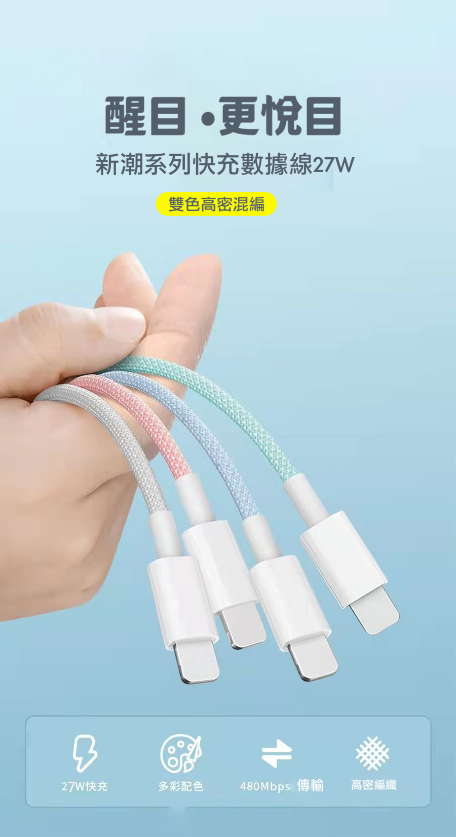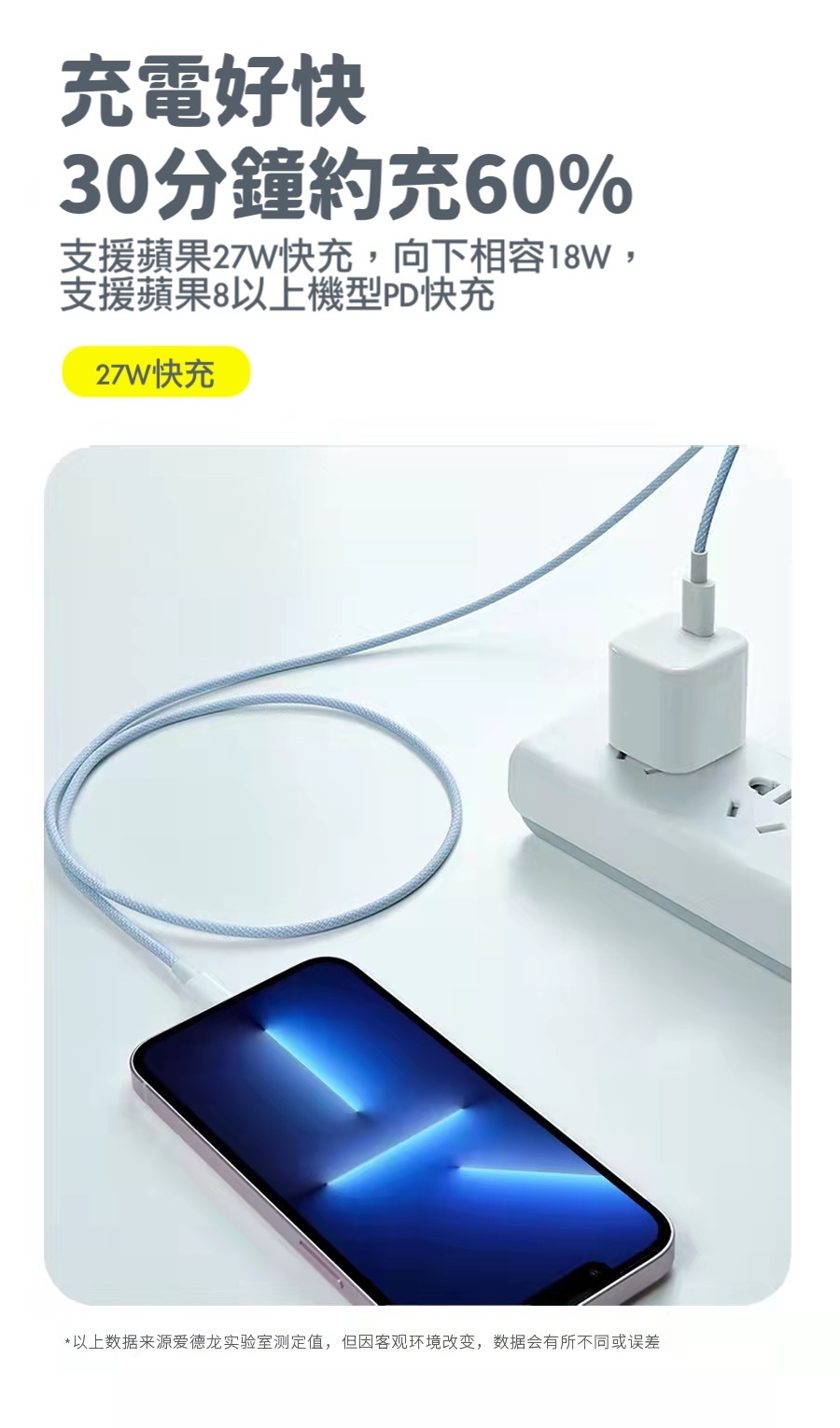 【 27W高速編織傳輸充電線】 適用於iPhone 15系列 TYPE-C TO TYPE-C 27WPD快充,可充電、傳輸