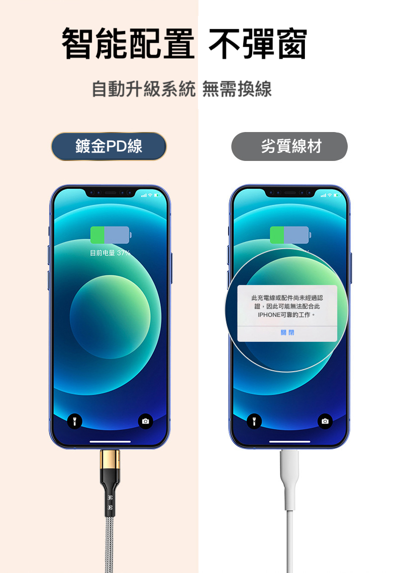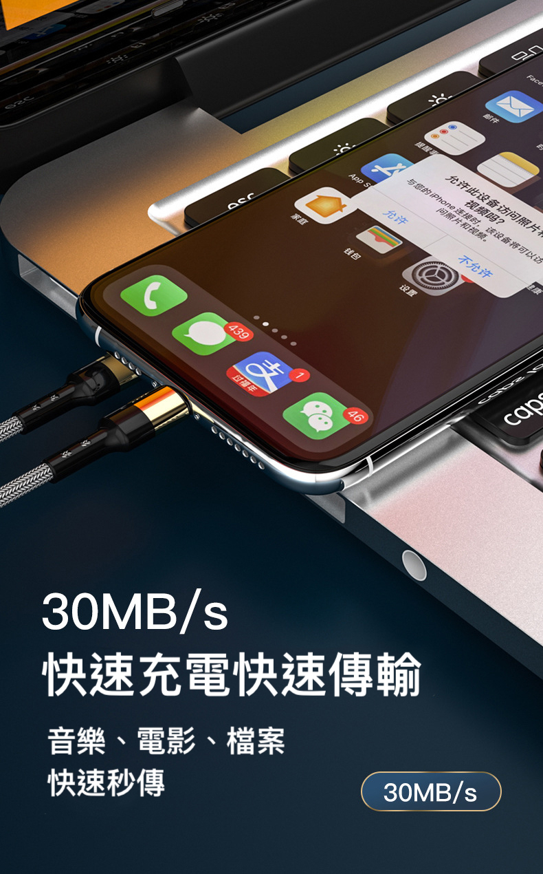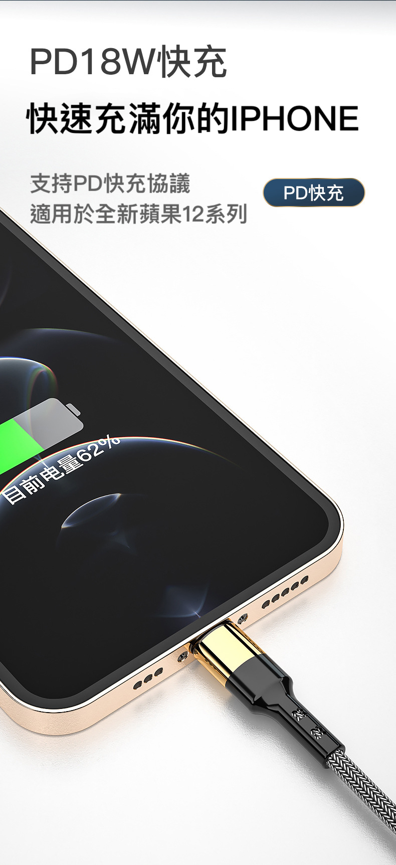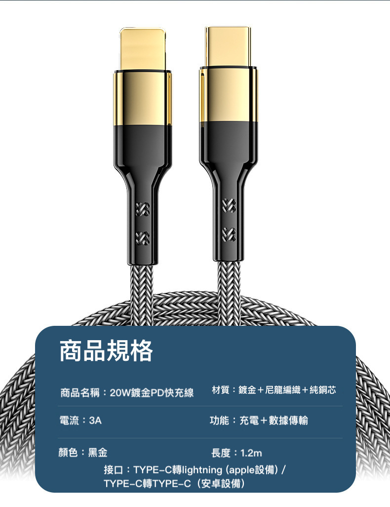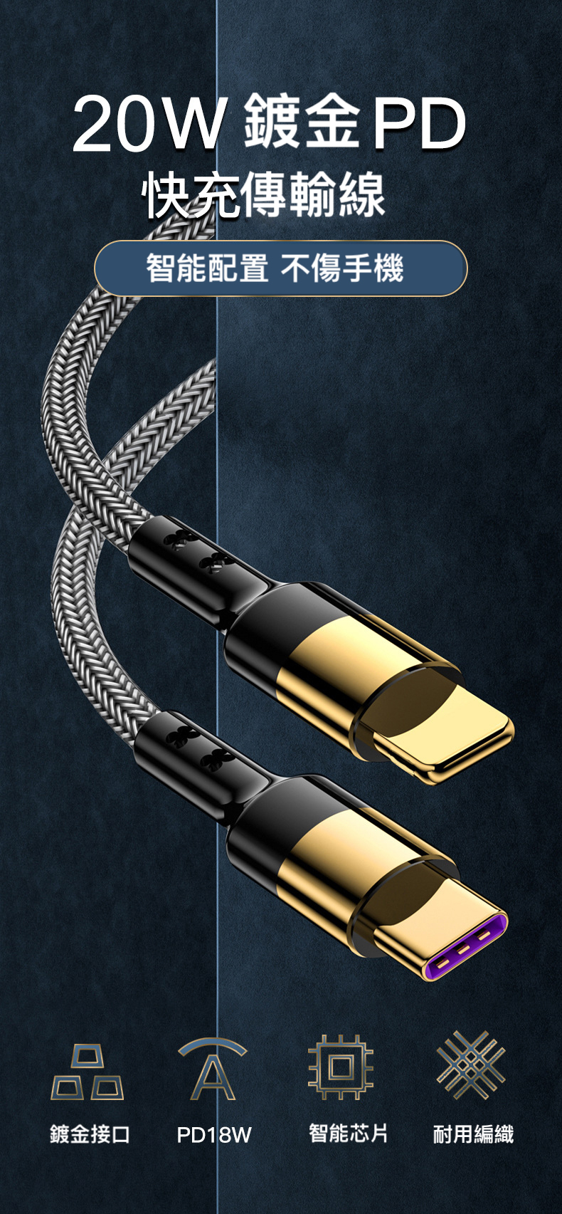【20W鍍金PD快充傳輸線】 20W快充效能,C轉lightning/C轉C 2種接口可選