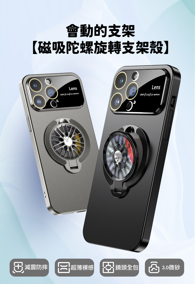 【陀螺旋轉支架磨砂磁吸殼】極致輕薄防摔殼 4K鏡頭全包,精準防塵網 適用於 iPhone 15系列14系列13系列12系列