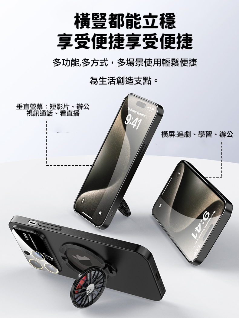 獨家陀螺旋轉支架,可調整角度、magsafe磁吸、旋轉