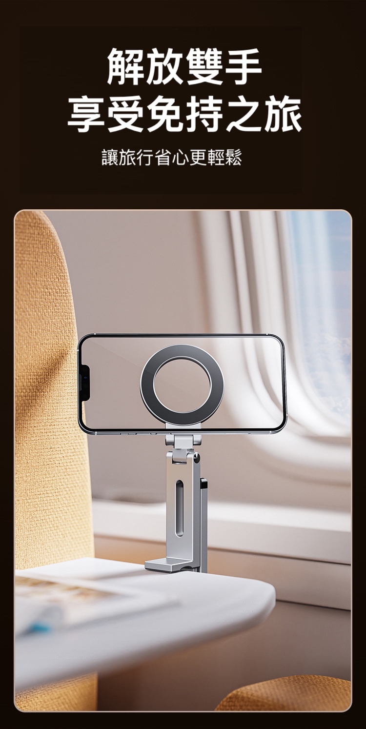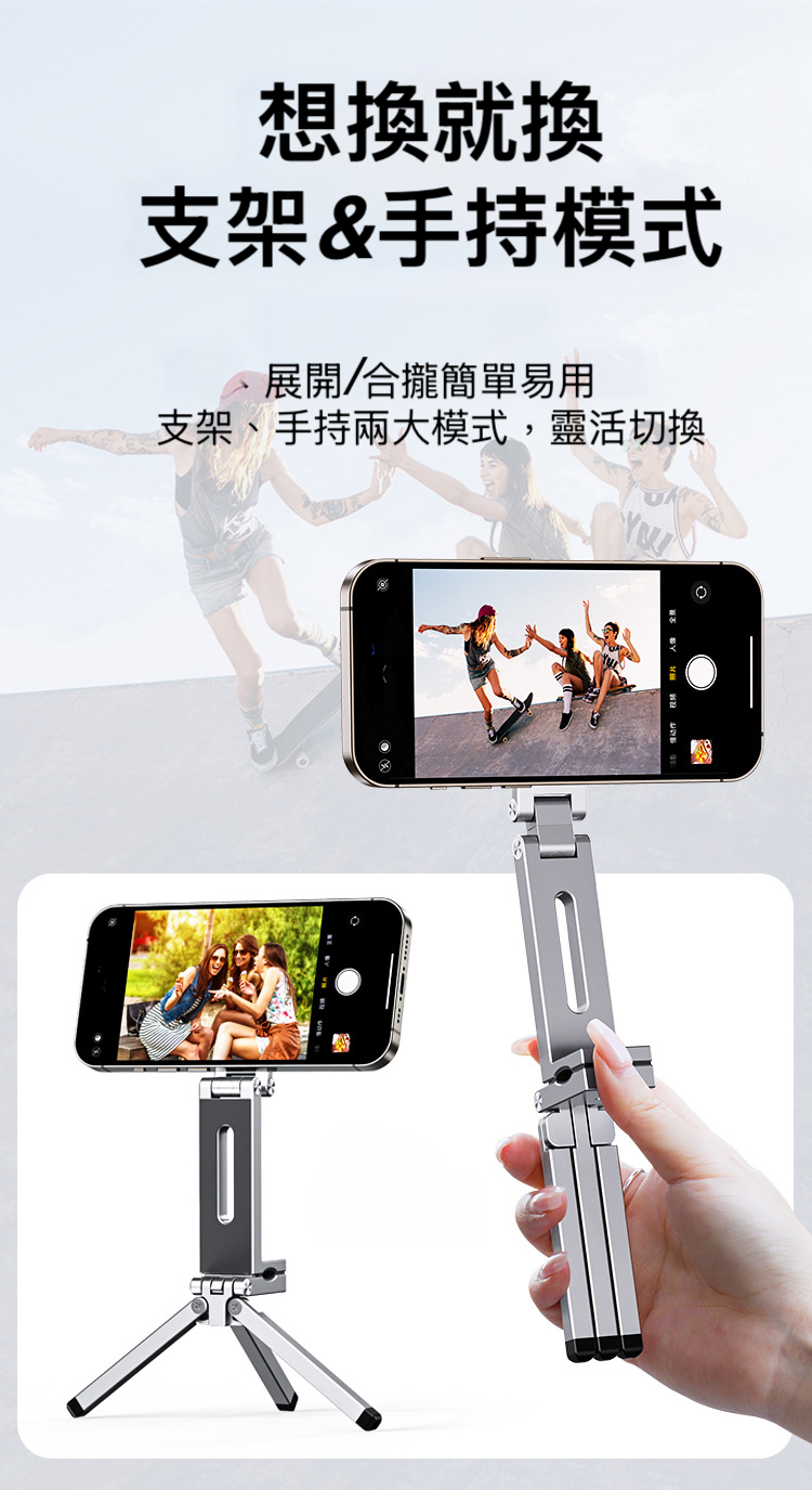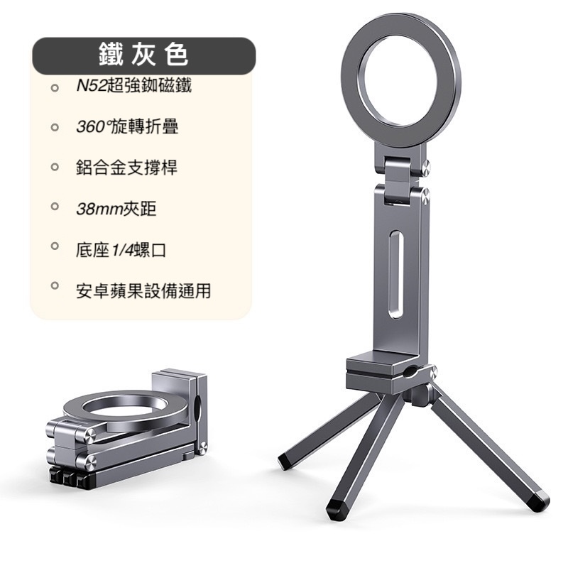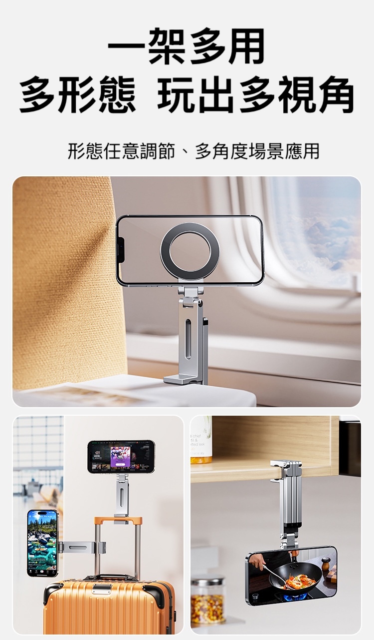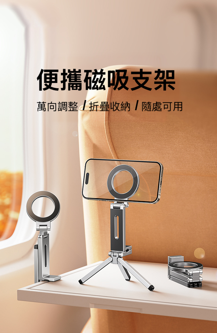 三合一支架【鋁合金magsafe磁吸支架】三腳架+自拍棒+360°萬向旋轉 智慧自動磁吸支架|自動真空排氣||多場景牢固吸附