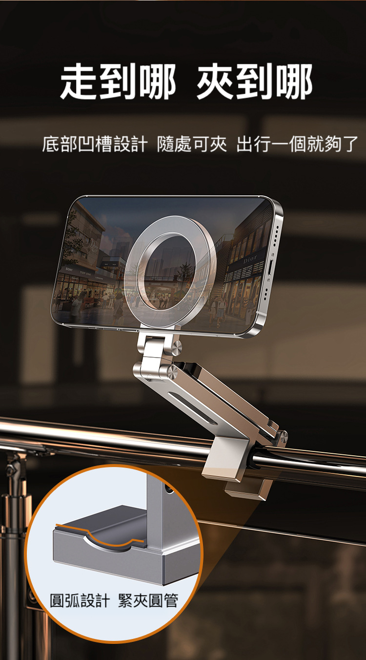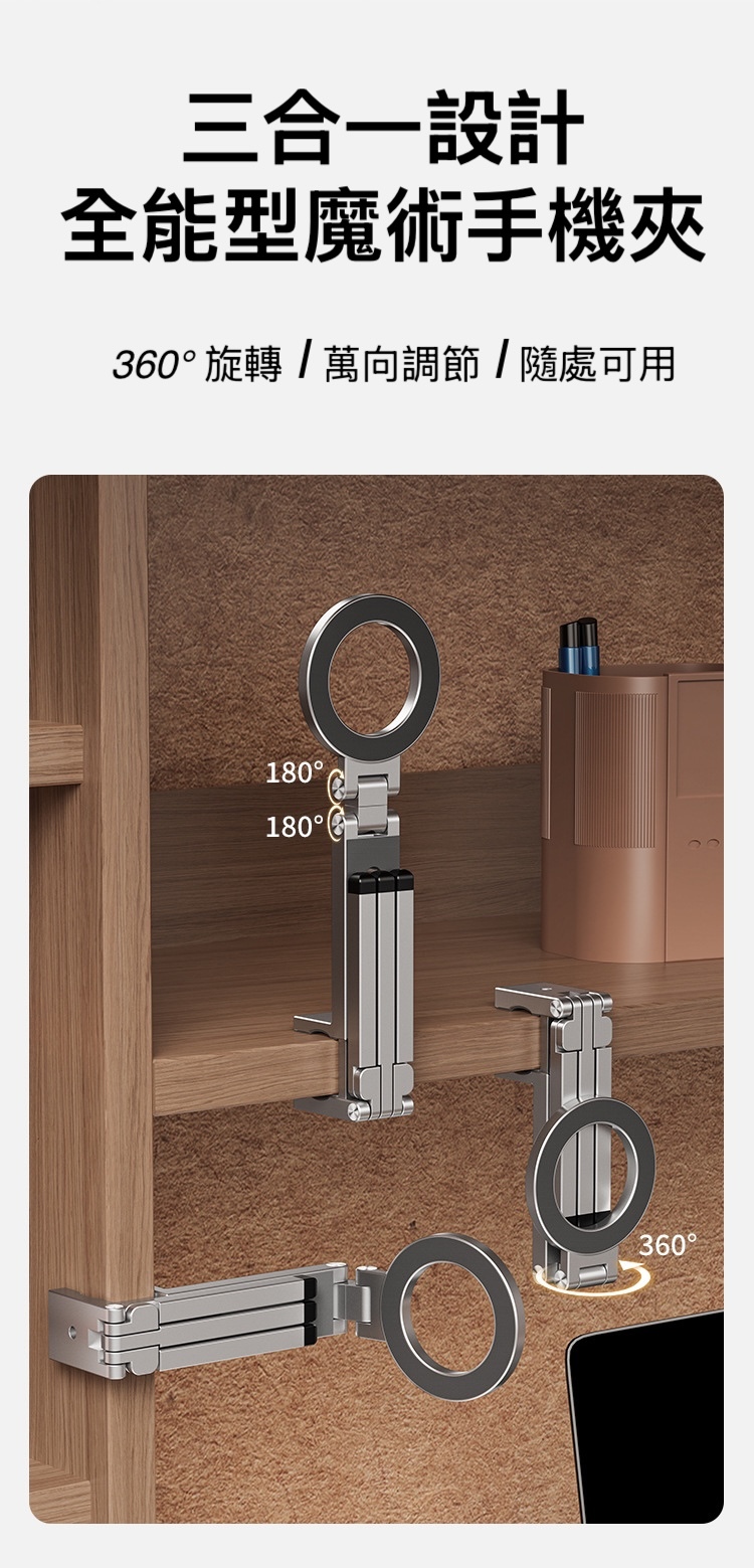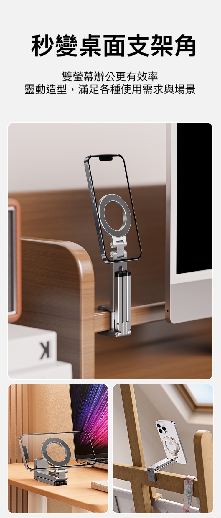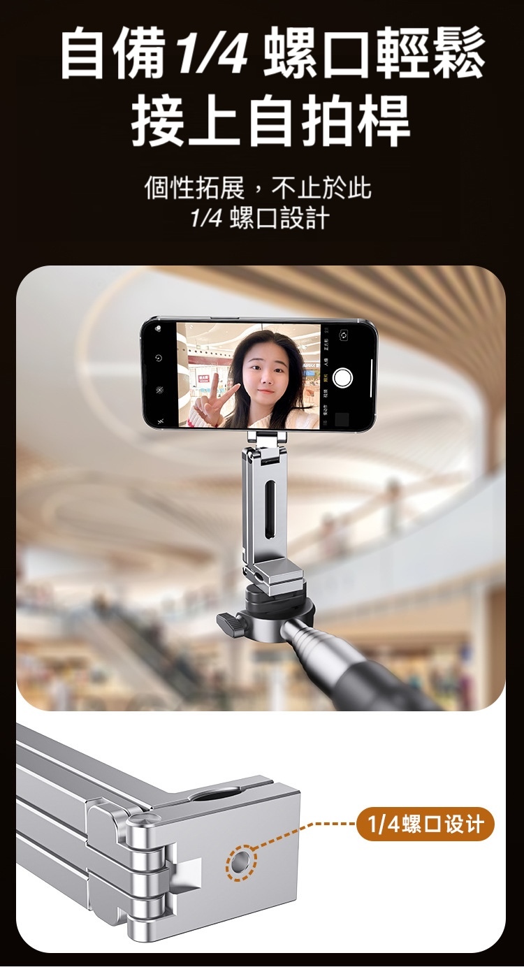 三合一支架【鋁合金magsafe磁吸支架】三腳架+自拍棒+360°萬向旋轉 智慧自動磁吸支架|自動真空排氣||多場景牢固吸附