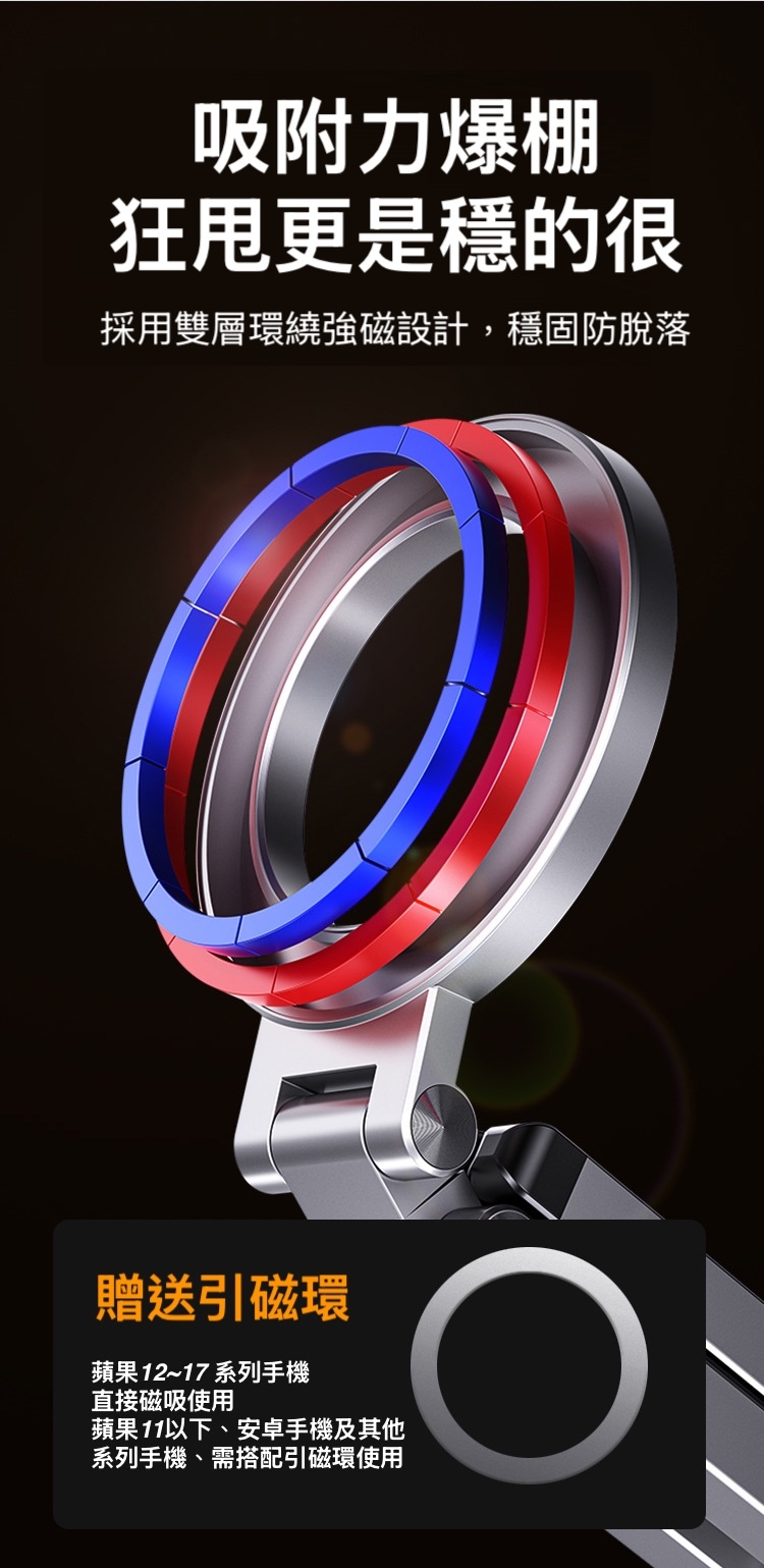 雙向吸盤車用支架【magsafe真空磁吸支架】 自動真空- 漏氣自動排氣 多地方可吸- 光滑面都可吸附 萬向球頭- 360°任意旋轉 65kpa大吸力- 電動真空吸附 1.5KG強磁- 20顆
