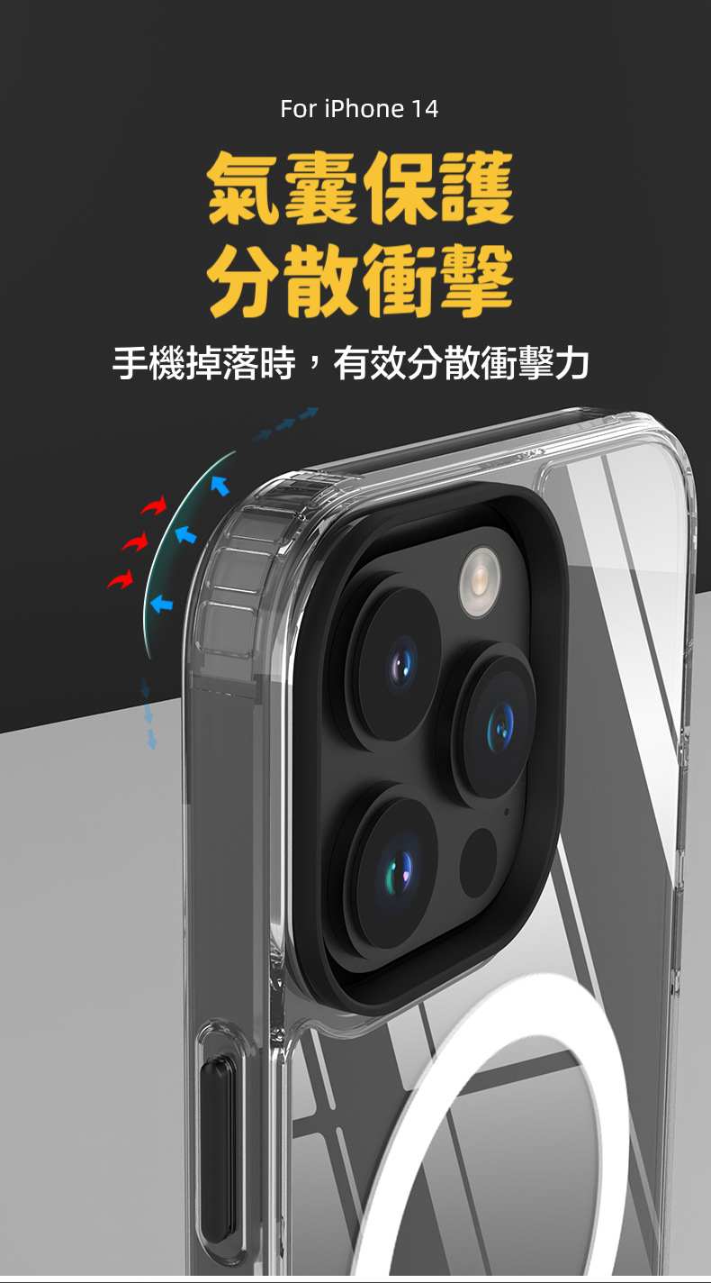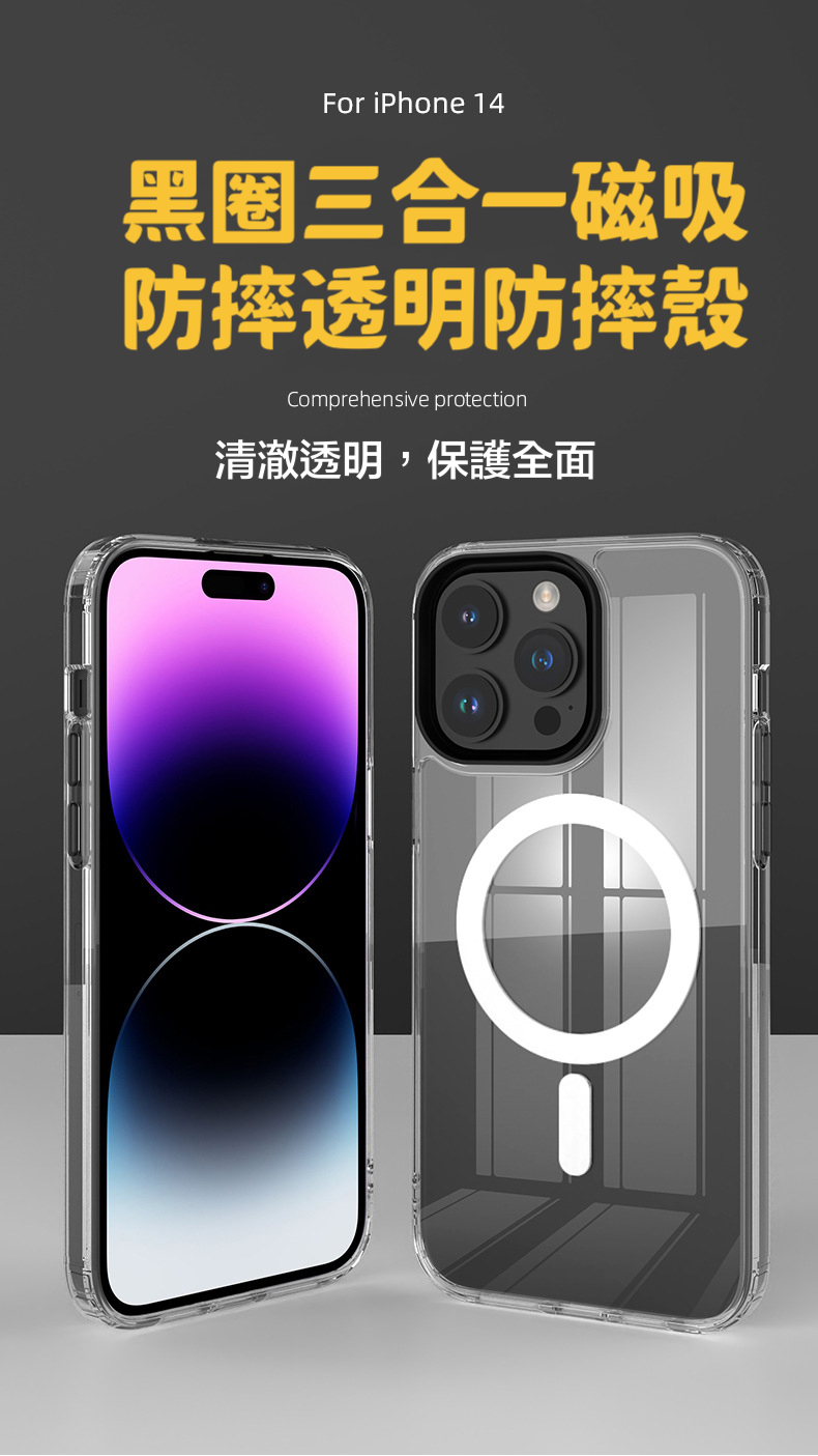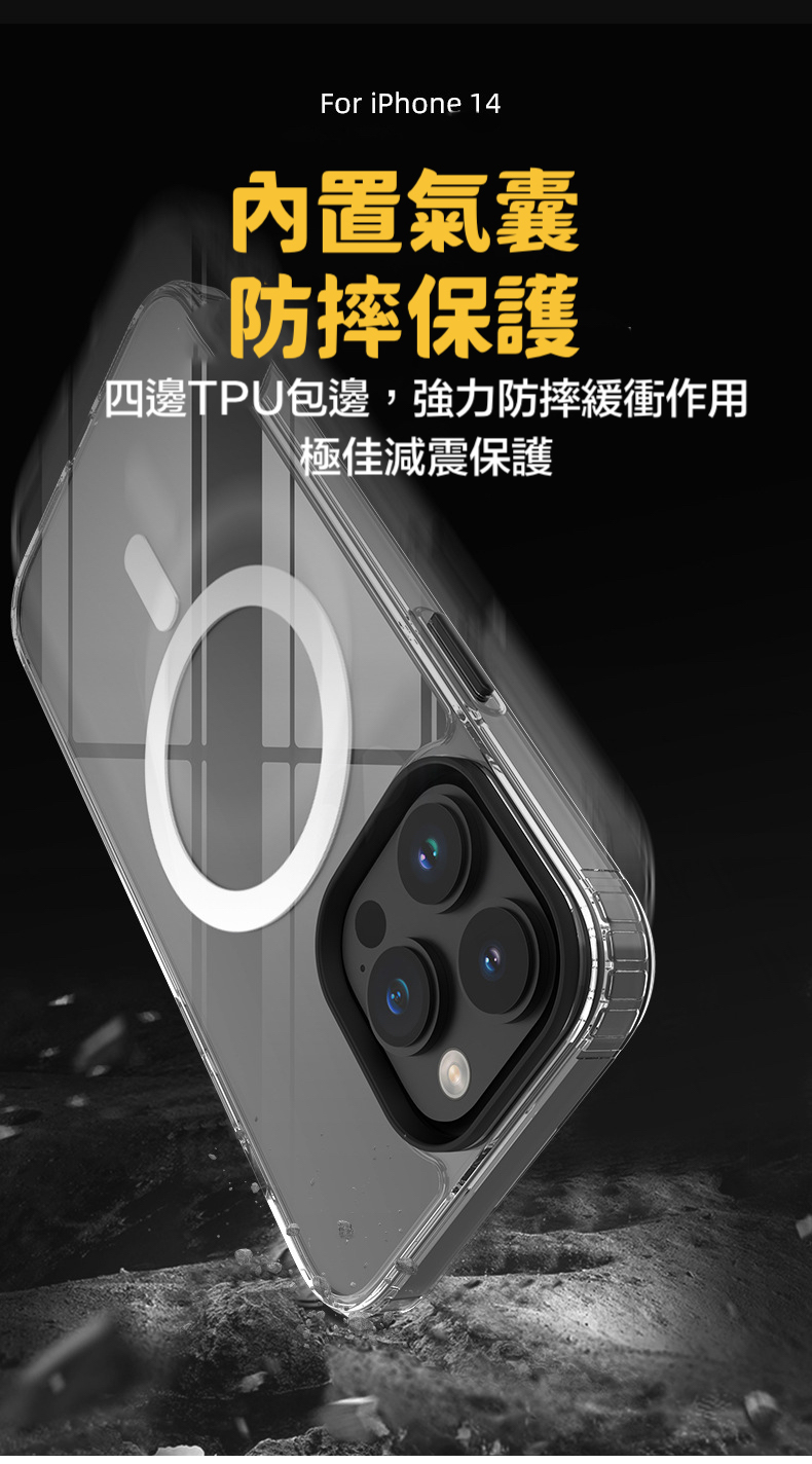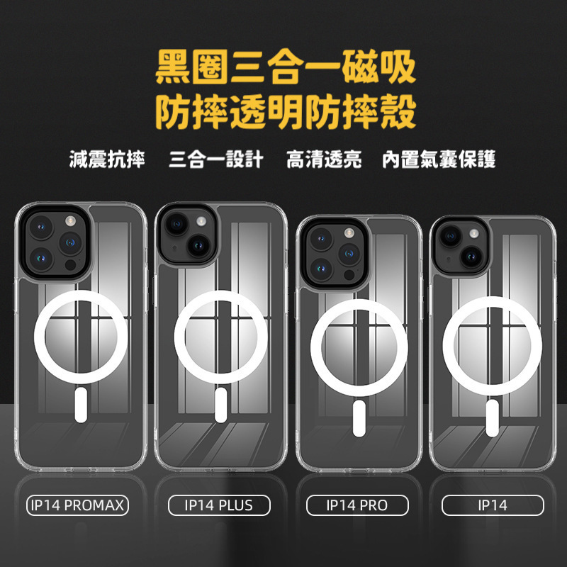 三合一磁吸黑圈透明防摔殼 iPhone 14系列/13系列/12系列