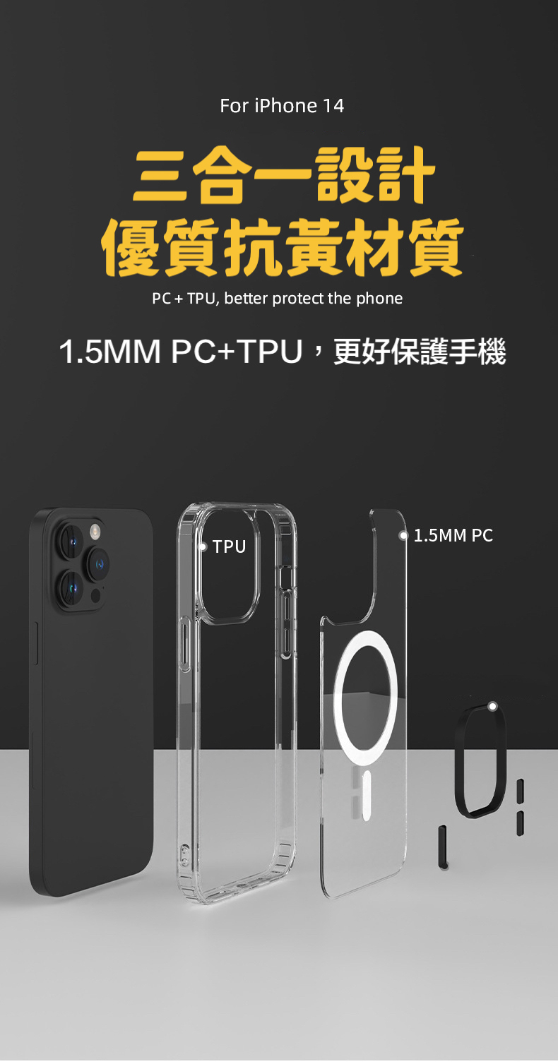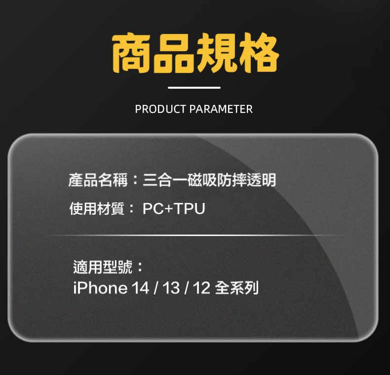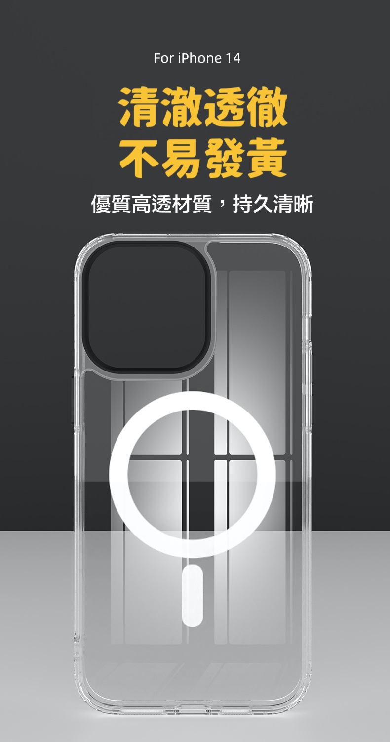 三合一磁吸黑圈透明防摔殼 iPhone 14系列/13系列/12系列