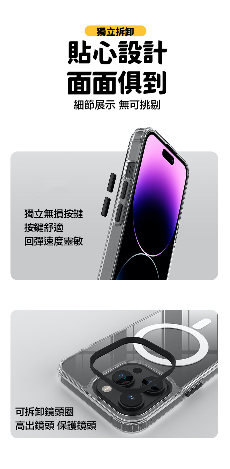 獨立可拆卸鏡頭圈,高過鏡頭0.6mm增強鏡頭保護,更具美觀