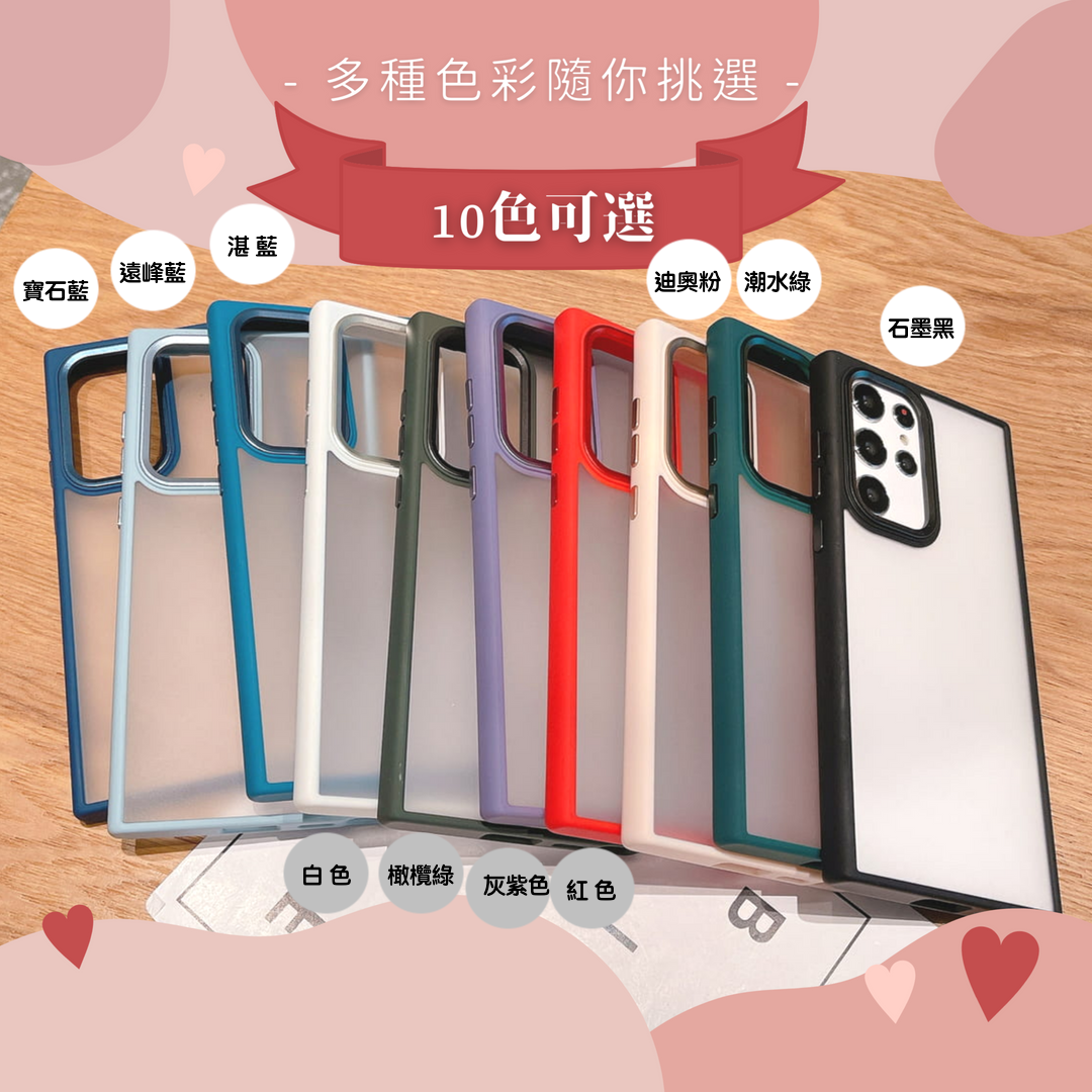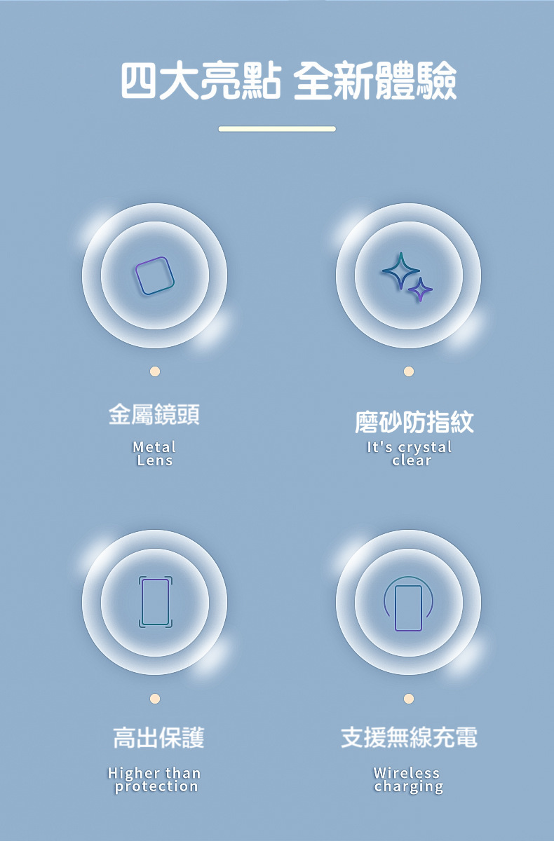 護殼材料 : 金屬鏡頭按鍵+磨砂PC背板+磨砂TPU軟邊