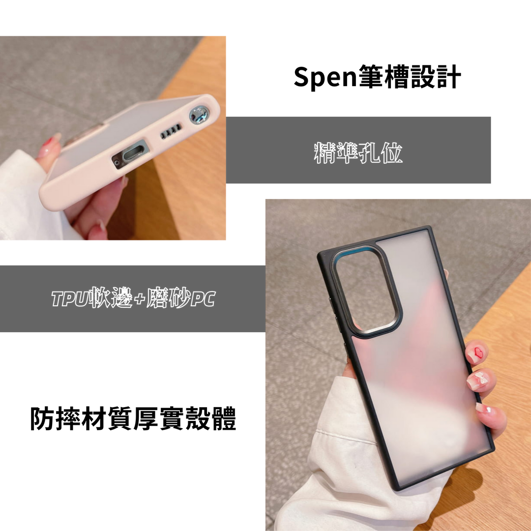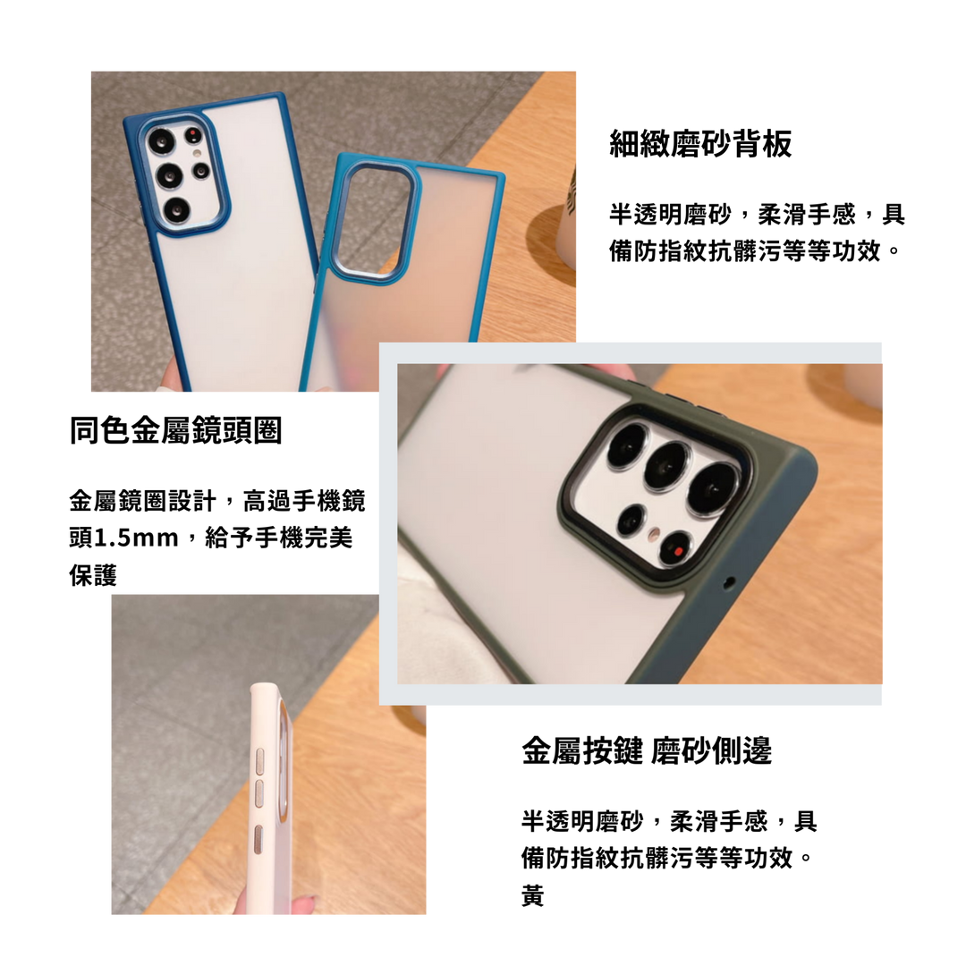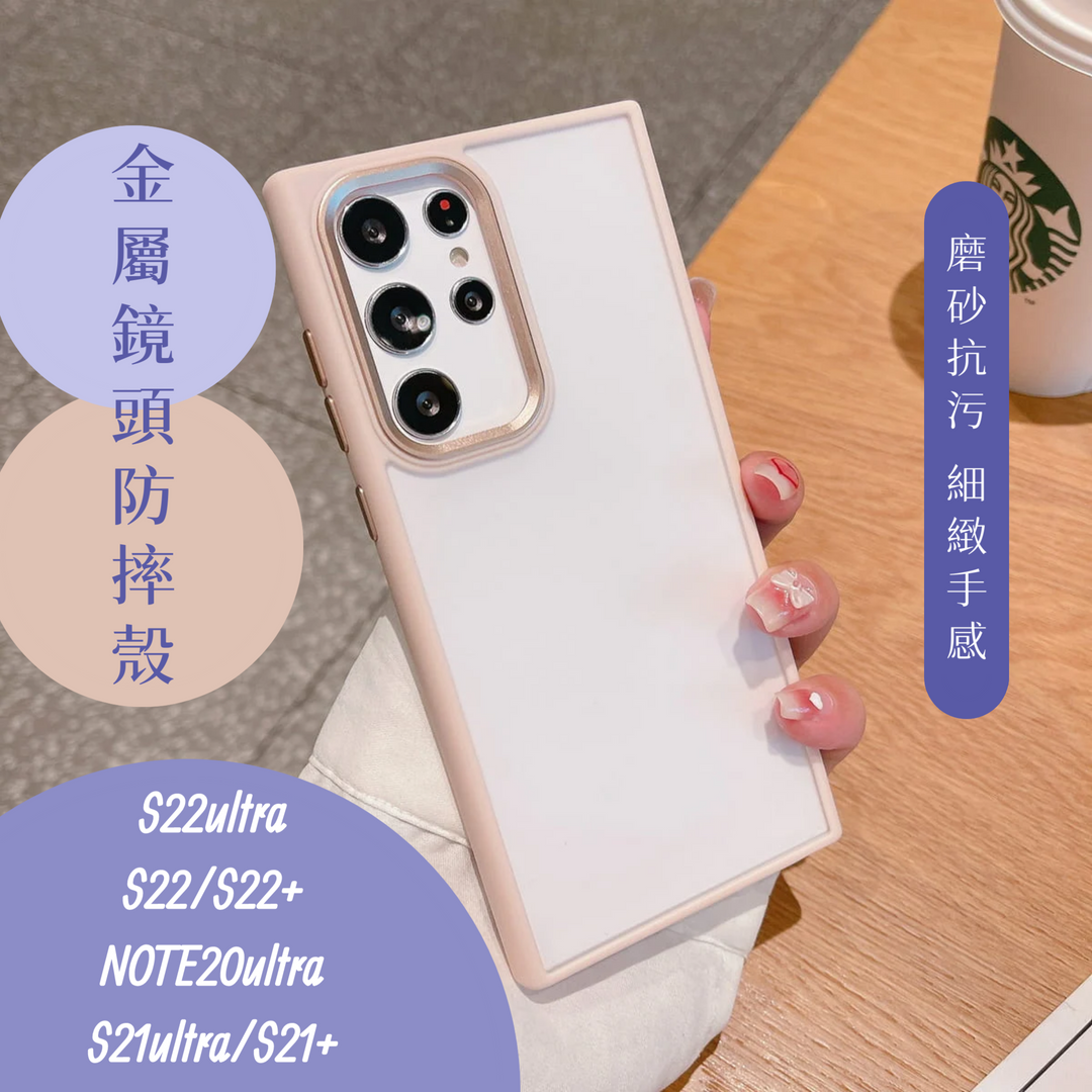 三星S22/S22ultra/S22+/S21ultra/S21+/NOTE20ultra【金屬鏡頭防摔殼 】防指紋磨砂TPU+PC背板一體成型【金屬鏡頭、按鍵】