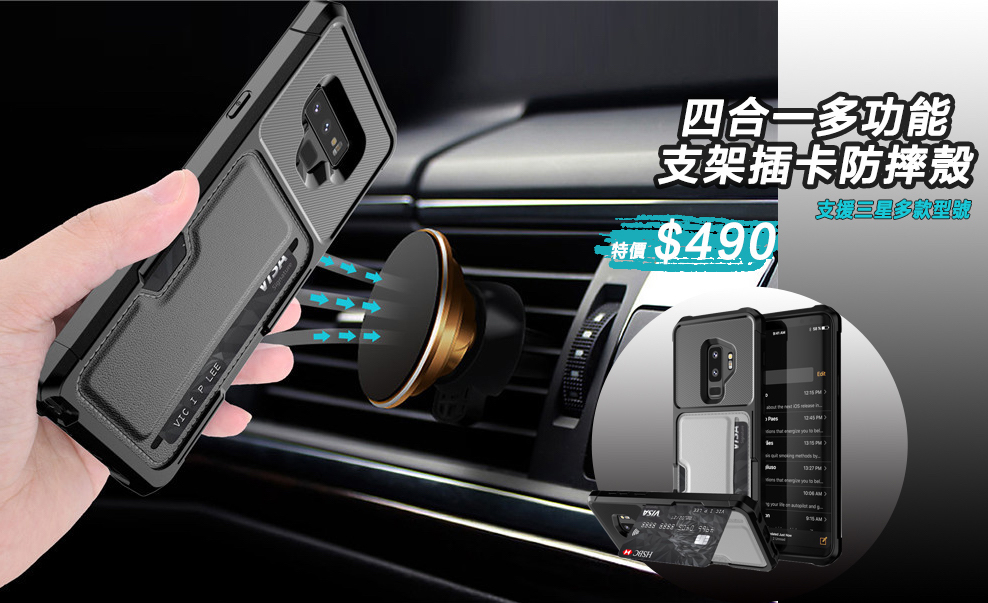 三星『四合一支架防摔殼』支架/插卡/防摔/車載磁吸多功能