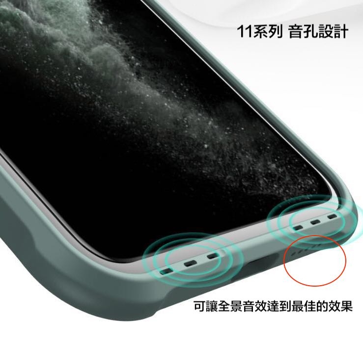 注意:11系列手機增加了全景杜比音效功能,為了讓7D殼能夠凸顯全景音效的特點所以在右邊多個幾個4D環繞音效的孔,這樣才能讓全景音效達到最佳的效果。
