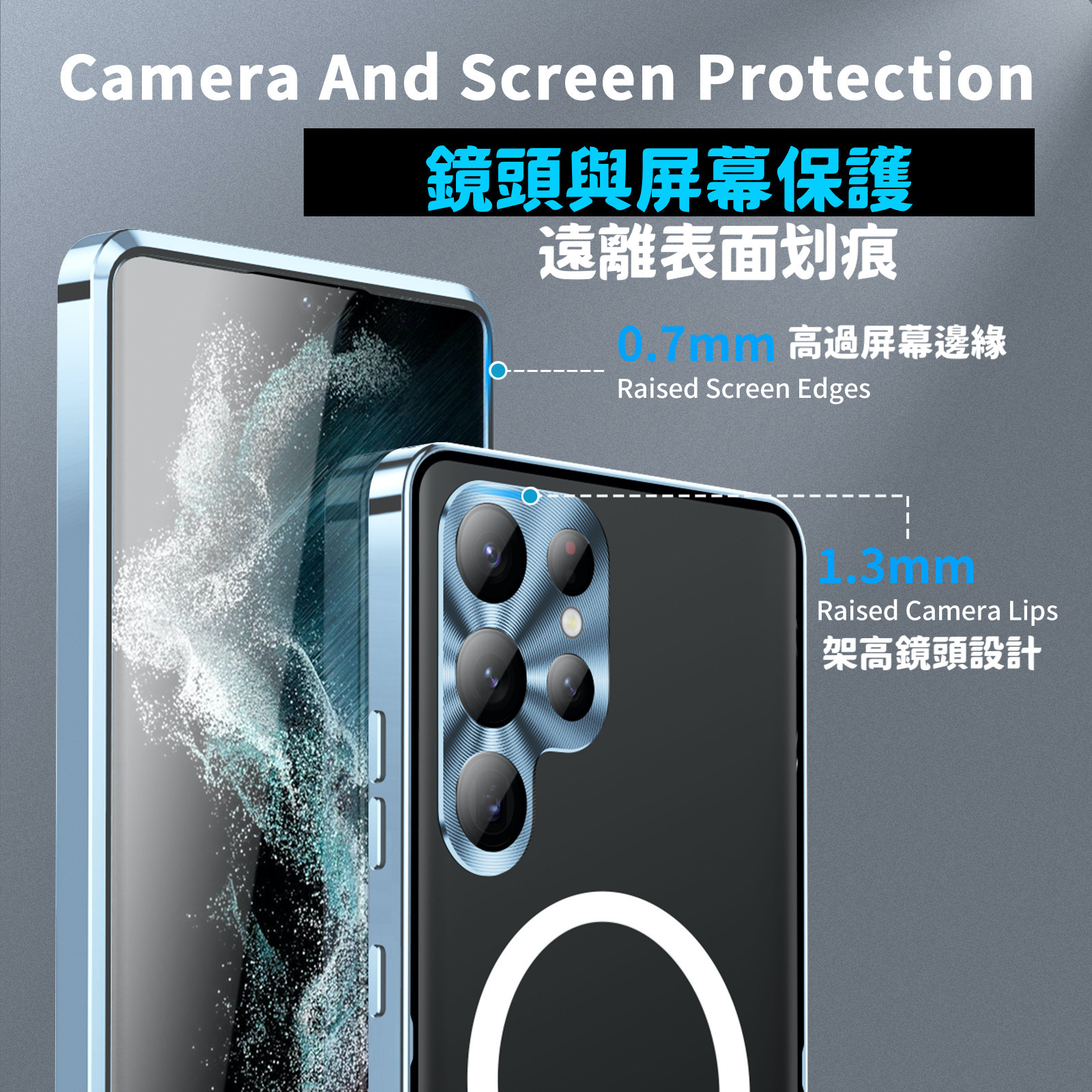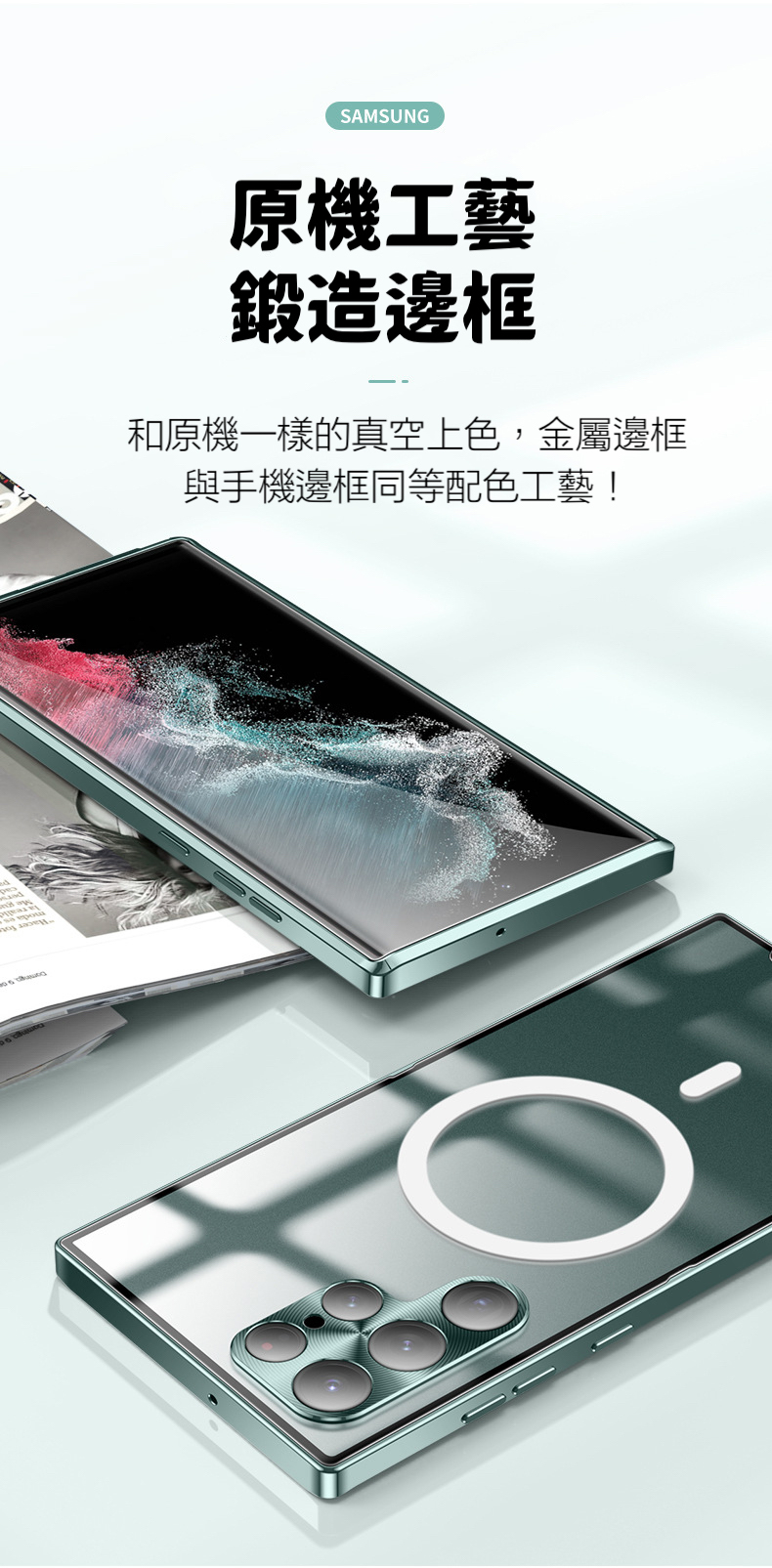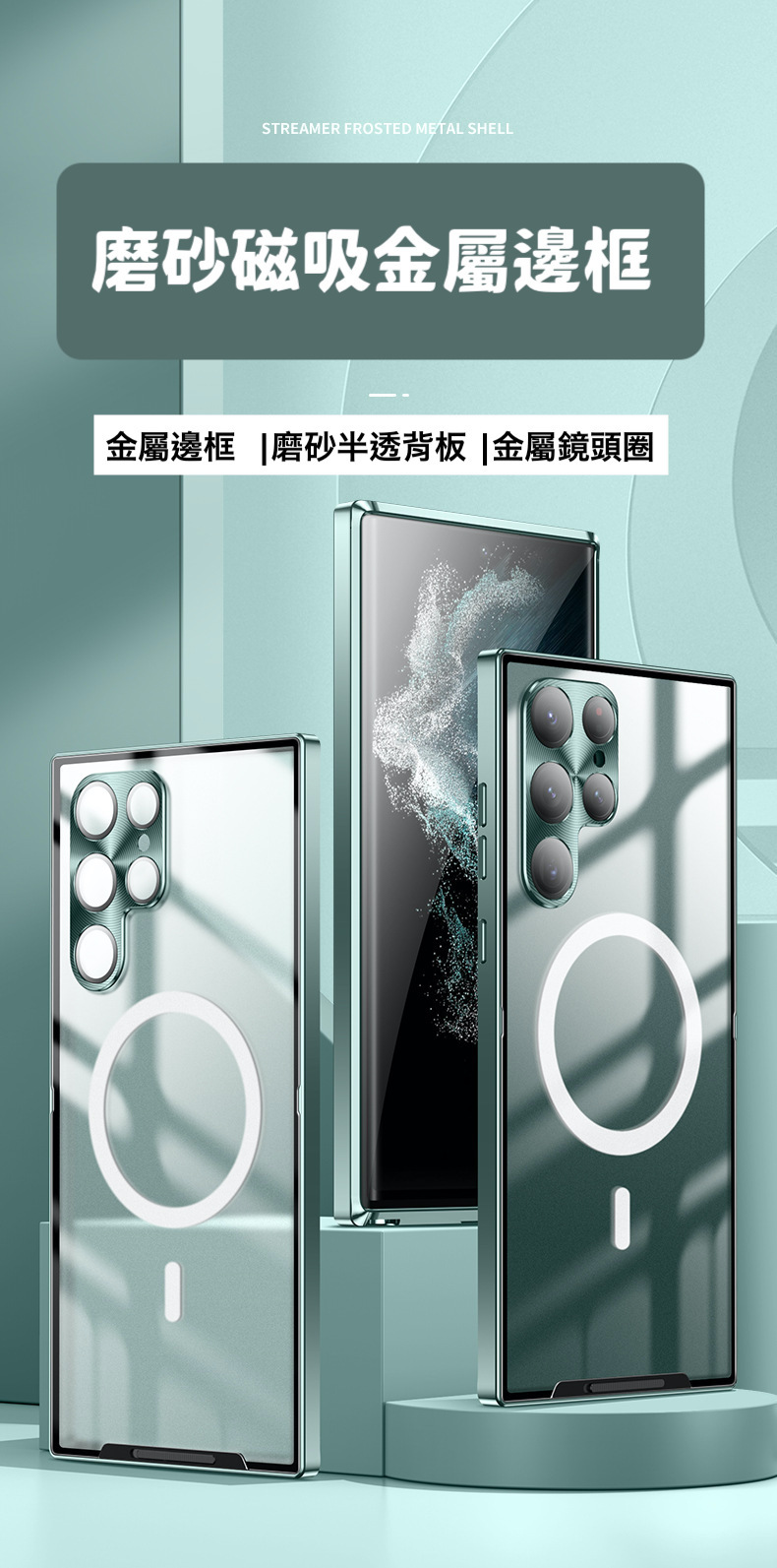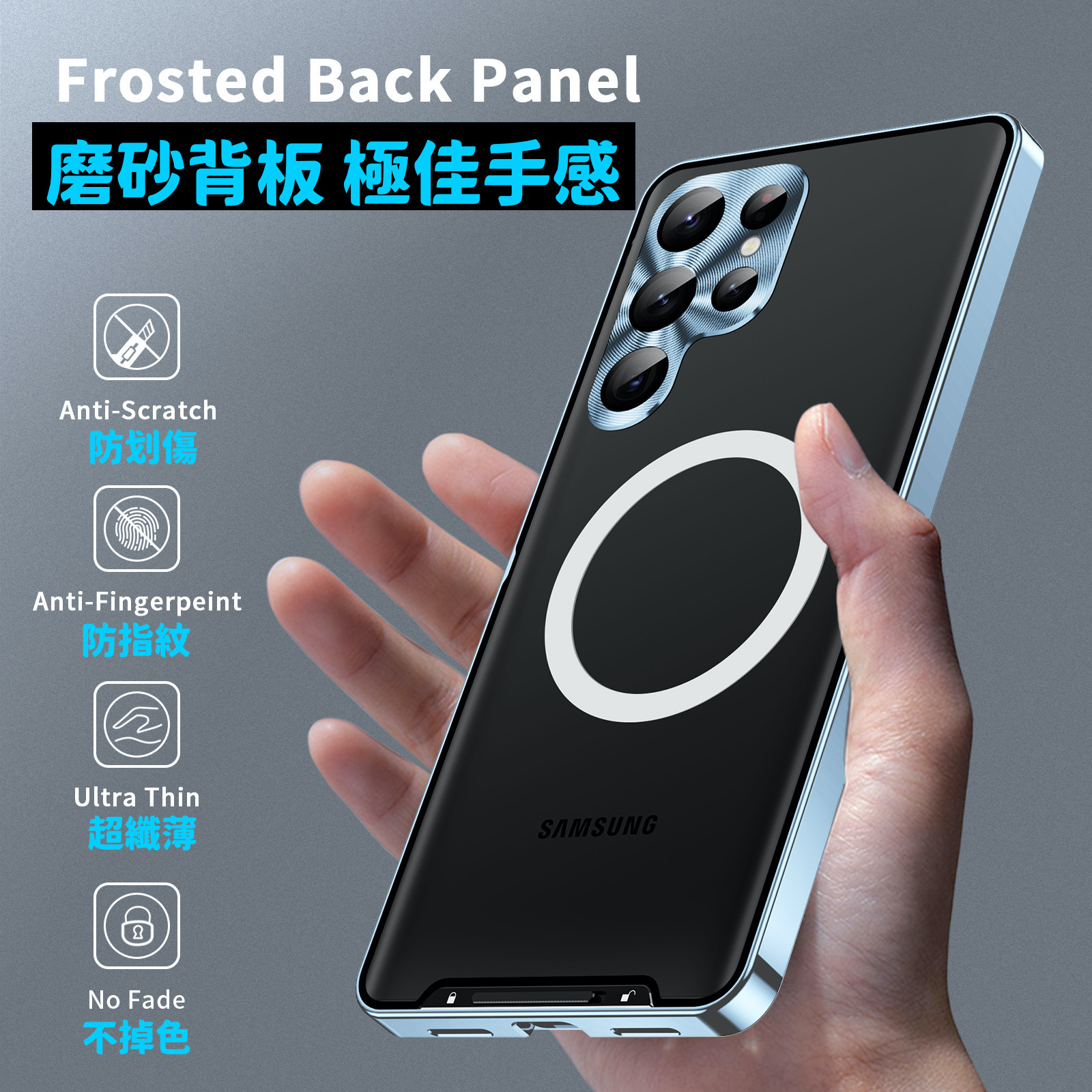 鋼盾 三星S25系列S24系列S23系列S22系列S21/note20ultra【金屬邊框磨砂殼】4K鏡頭全包+鋁合金邊框+磨砂防髒背板 配置magsafe磁吸圈 S22ultra/S22/S22+/S21/S21ultra/S21+