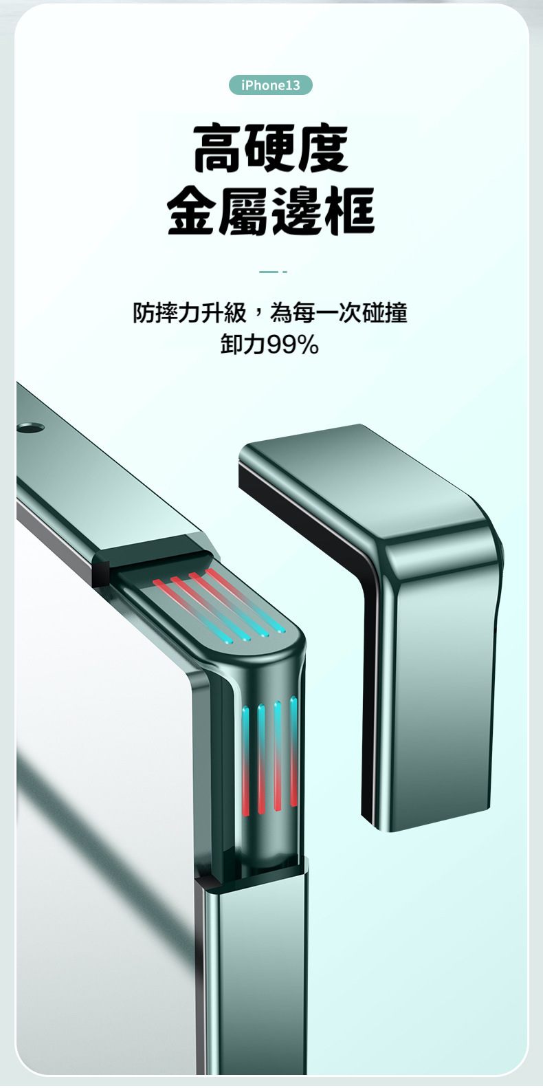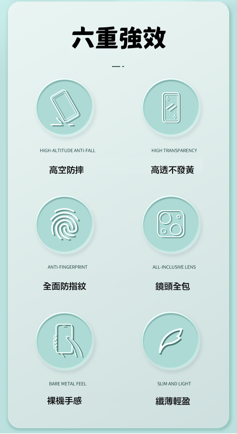 背面四個角落鏡頭邊角凸起約0.3mm, 充分保護鏡頭與邊角,有效吸附四角摔落力道。