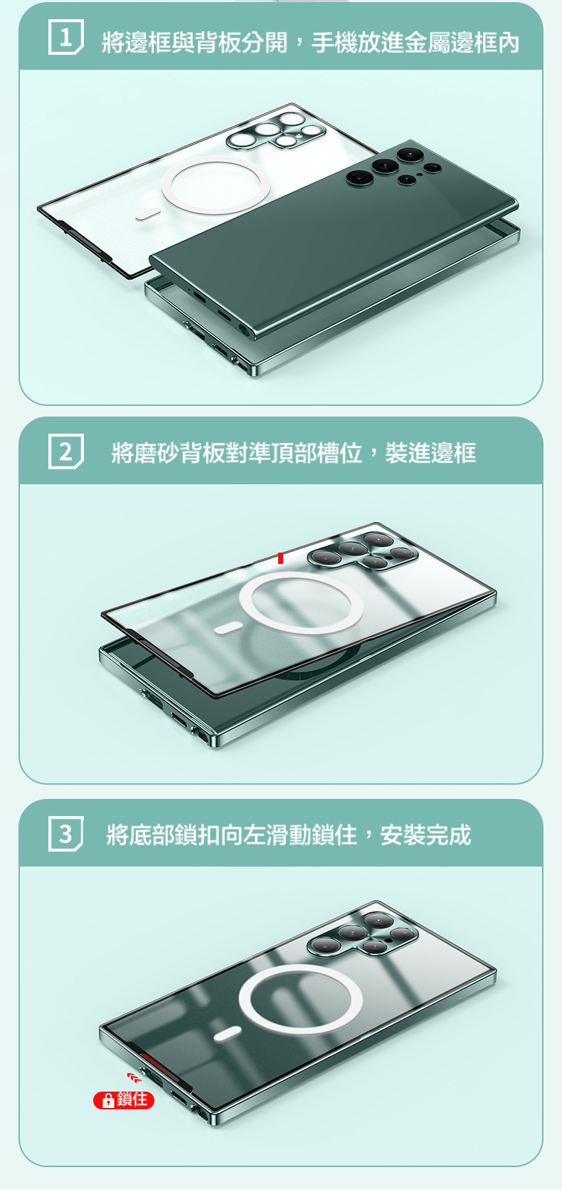鋼盾 三星S25系列S24系列S23系列S22系列S21系列note20ultra 【金屬邊框磨砂殼】4K鏡頭全包+鋁合金邊框+磨砂防髒背板 配置magsafe磁吸圈