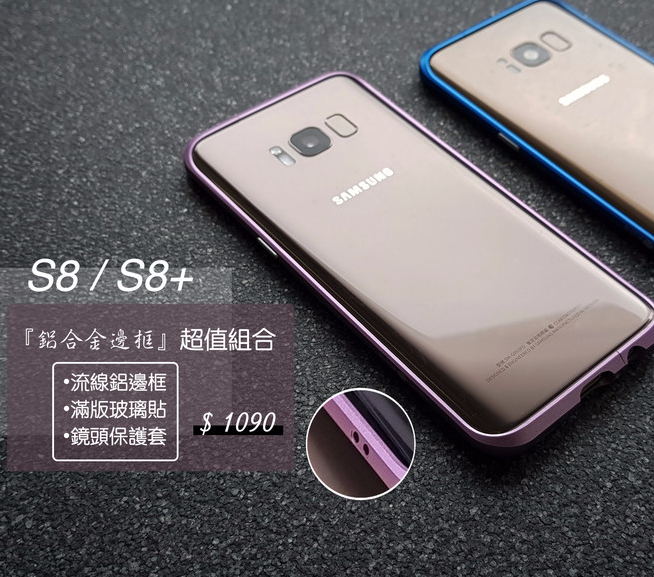 【超值優惠組合套餐】三星S8 / S8+ 鋁合金邊框組合 內含:一組鋁框+一張3D玻璃貼+一組馬卡龍鏡頭套